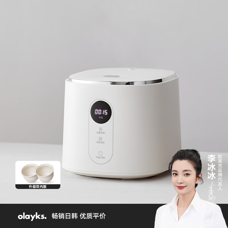 欧莱克(olayks) 迷你电饭煲1-2人 电饭锅小型家用2升小电饭锅智能预约多功能煲汤煮粥米饭锅防溢煮饭锅 3.0L陶白【1-6人用】【陶瓷釉不粘双胆】价格:289.00元!
