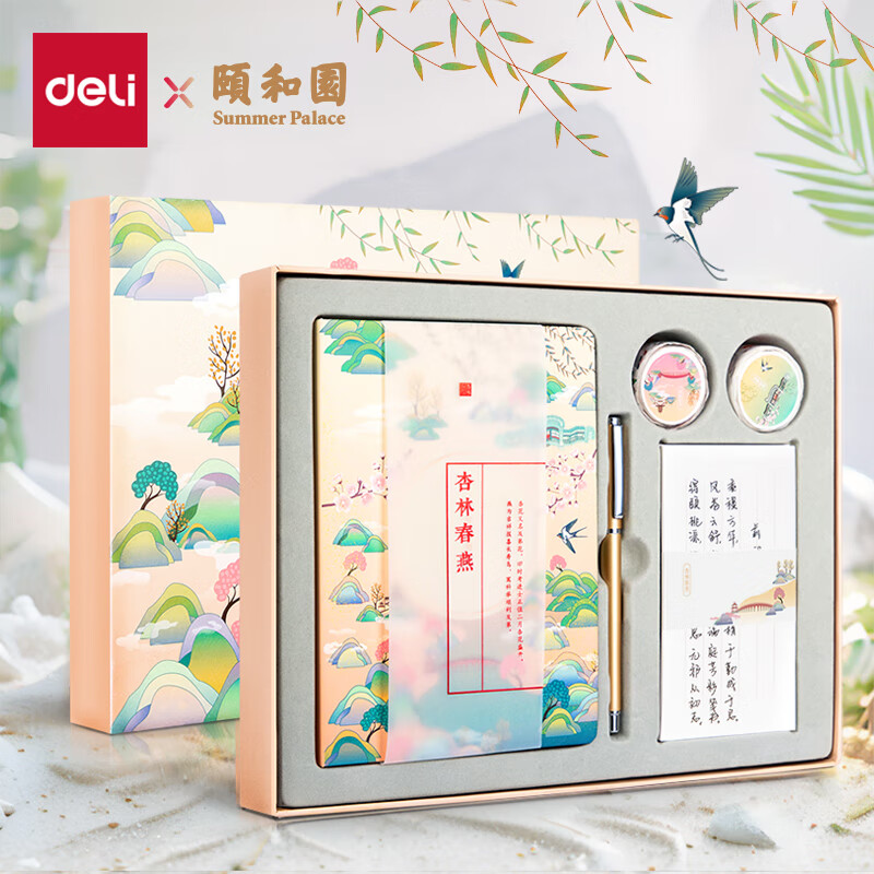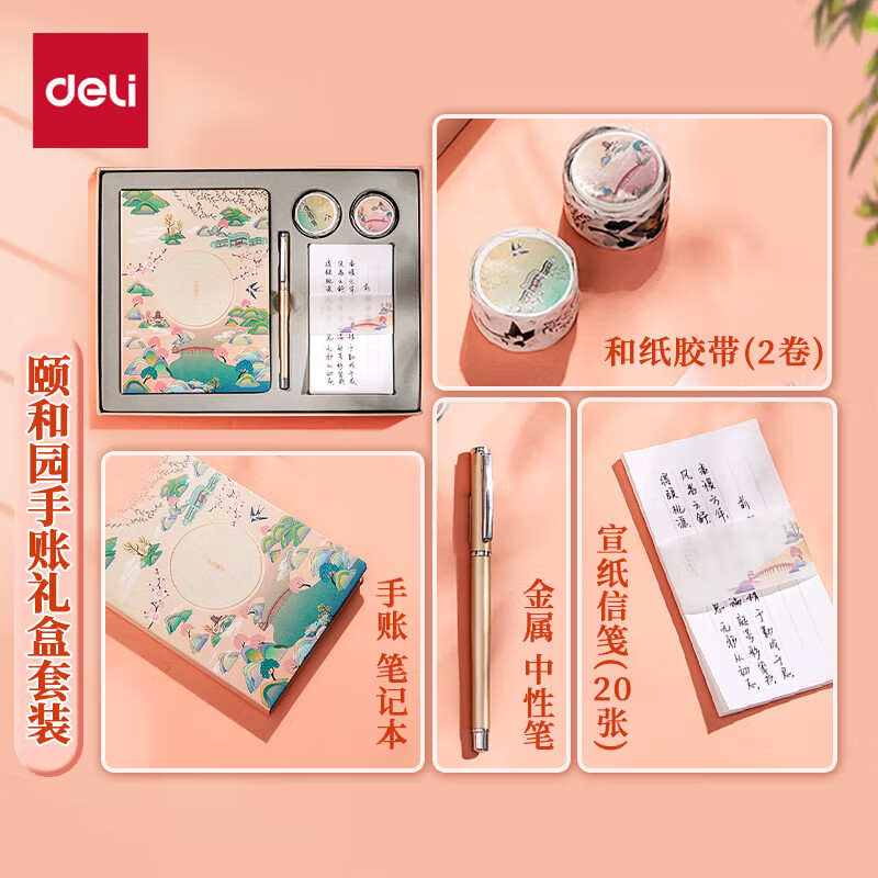 得力(deli)颐和园手账礼盒套装杏林春燕(皮面记事本+和纸胶带+信笺+金属中性笔)笔记本生日礼物圣诞元旦SZ021价格:87.70元!