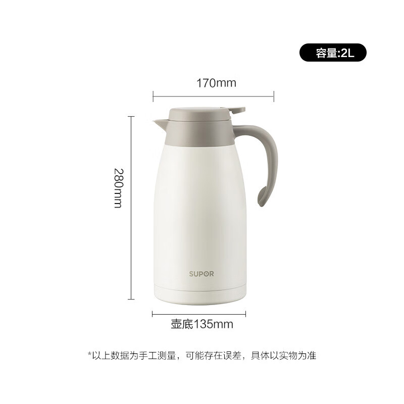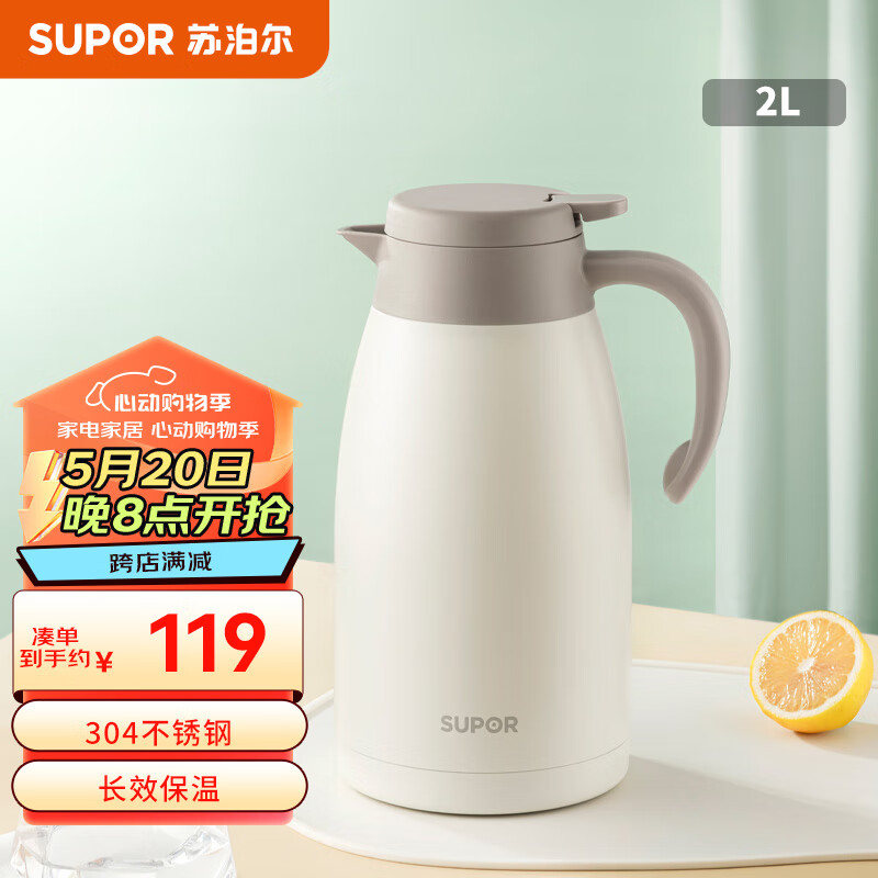 苏泊尔(SUPOR)家用真空保温瓶暖水壶瓶大容量热开水瓶壶304不锈钢2.0L燕麦白价格:119.00元!