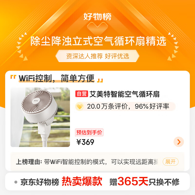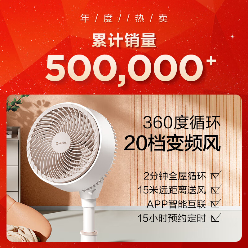 艾美特(AIRMATE)“海鸥”京东小家智能空气循环扇家用20档直流变频电风扇360度摆头台立式轻音小风扇 FA18-AD61价格:459.00元!