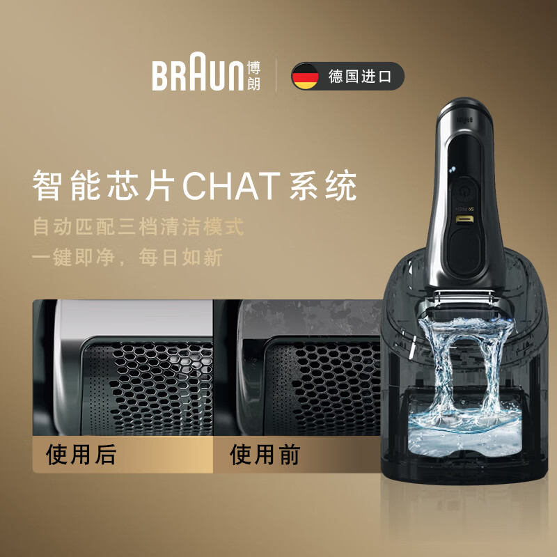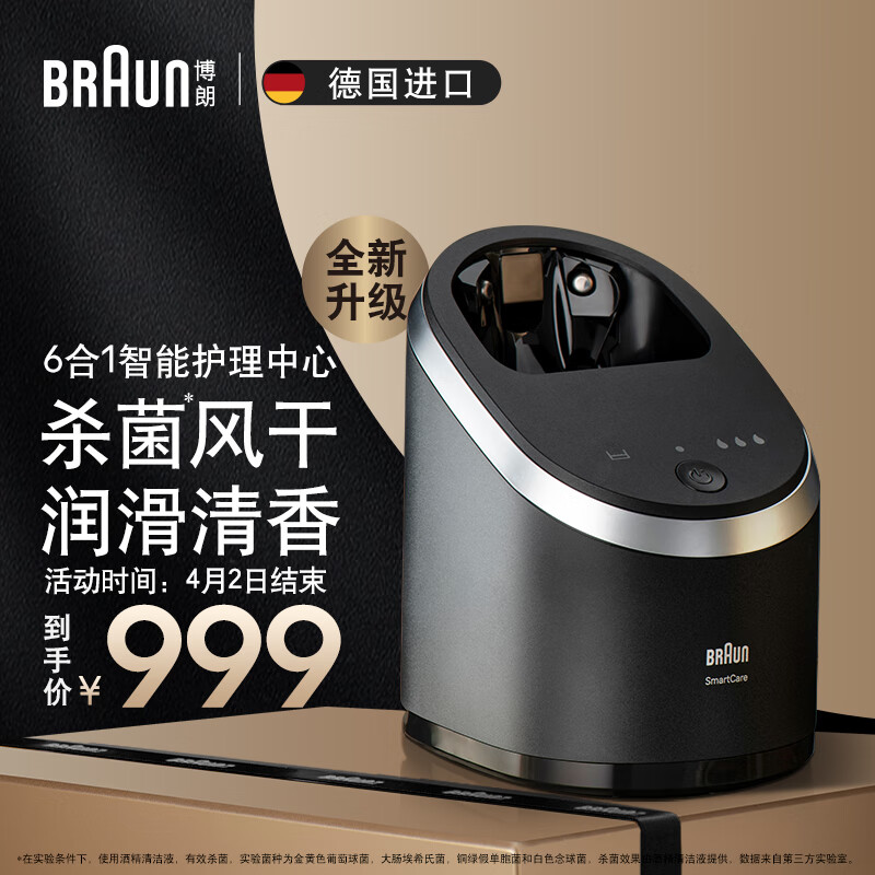 博朗(BRAUN)尊享9系pro+9686-6CC六合一升级版清洁护理中心电动剃须刀整机德国进口往复式剃须刀男士送男友价格:999.00元!