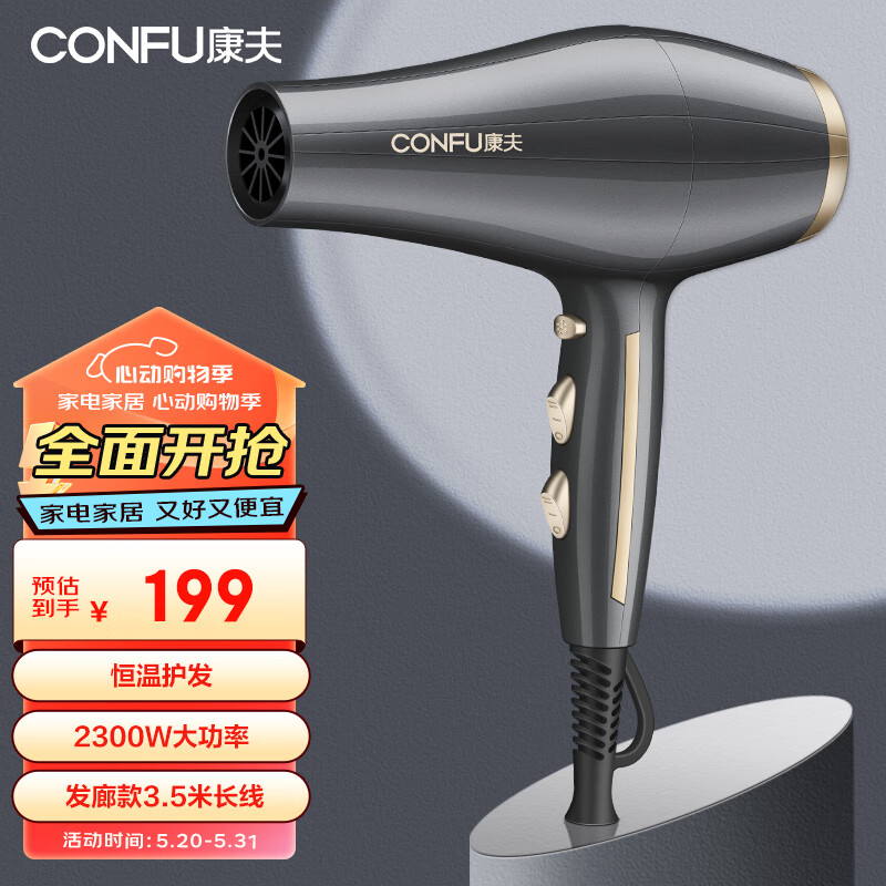 康夫(CONFU)电吹风机2300W大功率家用吹风筒专业发廊款大风力恒温护发快速干发电风筒KF-8955价格:199.00元!