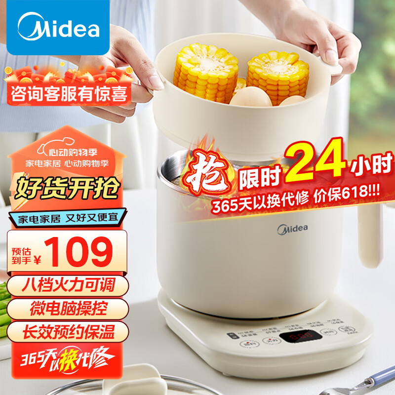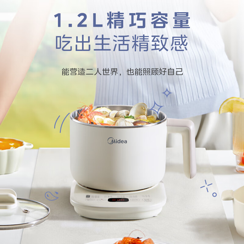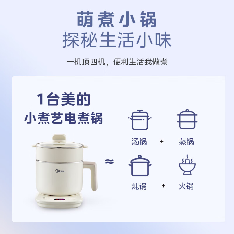 美的(Midea)电煮锅 宿舍小锅 小电锅 电热锅 学生蒸煮一体蒸屉电蒸锅 泡面火锅多功能锅 小煮艺养生锅YSG-02C价格:109.00元!