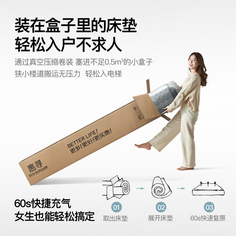 说句大实话惠寻卷包独袋弹簧床垫的朋友有点多,这回就给大家介绍下,这款才出不久,特别的受欢迎,这个产品的使用感受非常好,功能也非常,非常满意。