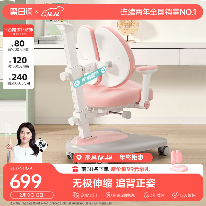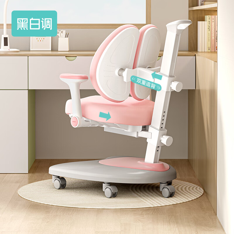 黑白调学习时光学习椅【追背正姿 抑菌乳胶】儿童学习椅学生椅 鲸灵椅PRO 粉价格:1099.00元!