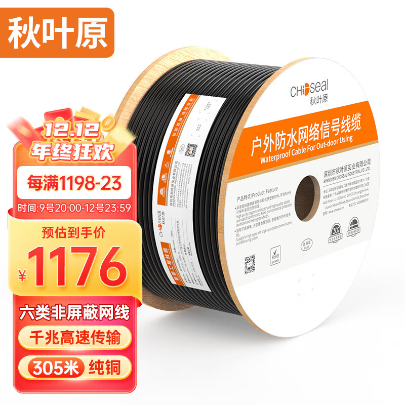 秋叶原(CHOSEAL)六类网线【商用版】室外防水非屏蔽千兆网线黑色305米 LDN7727MT305价格:1199.00元!