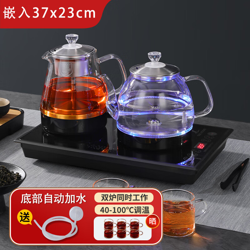 FUNORK 37X23全自动底部上水电热烧水壶家用抽水泡茶专用保温茶台一体机茶桌茶几嵌入式茶具套装 黑色 - 煮茶款(嵌入37x23cm) 1L价格:269.00元!