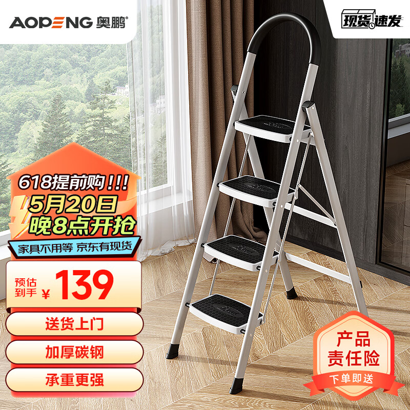 奥鹏 梯子家用四步折叠梯子加厚钢管铁梯宽踏板人字梯单侧工程梯价格:159.00元!