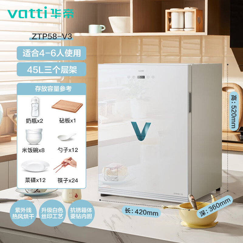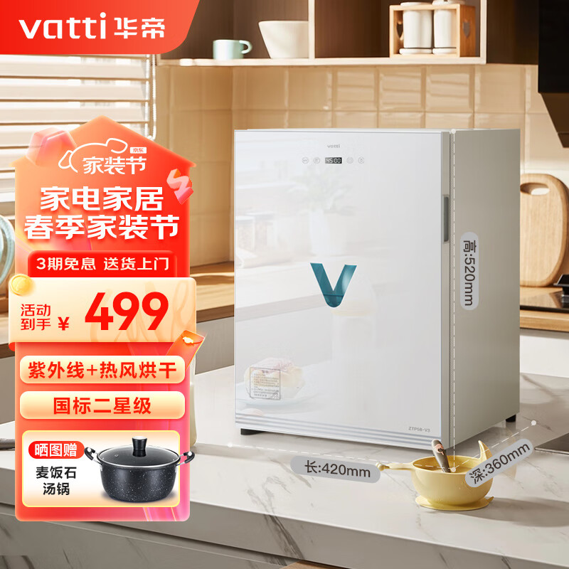 华帝(VATTI)消毒柜家用小型台式 紫外线热风烘干 宝宝奶瓶消毒器 厨房桌面餐具碗筷消毒碗柜 ZTP58-V3价格:599.00元!