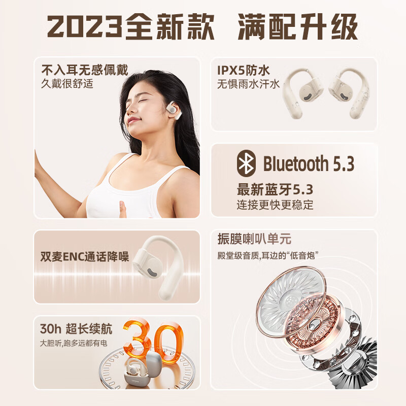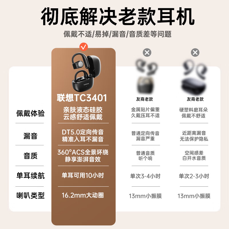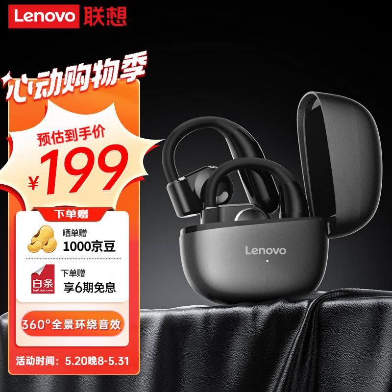 联想(lenovo)蓝牙耳机挂耳式骨传导概念开放式真无线不入耳舒适运动跑步通话降噪适用于苹果华为TC3401风暴灰价格:199.00元!