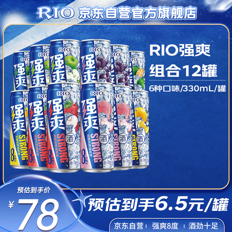 锐澳(RIO)洋酒 预调 鸡尾酒 果酒 8度 强爽系列 330ml*12罐(6种口味)价格:78.00元!