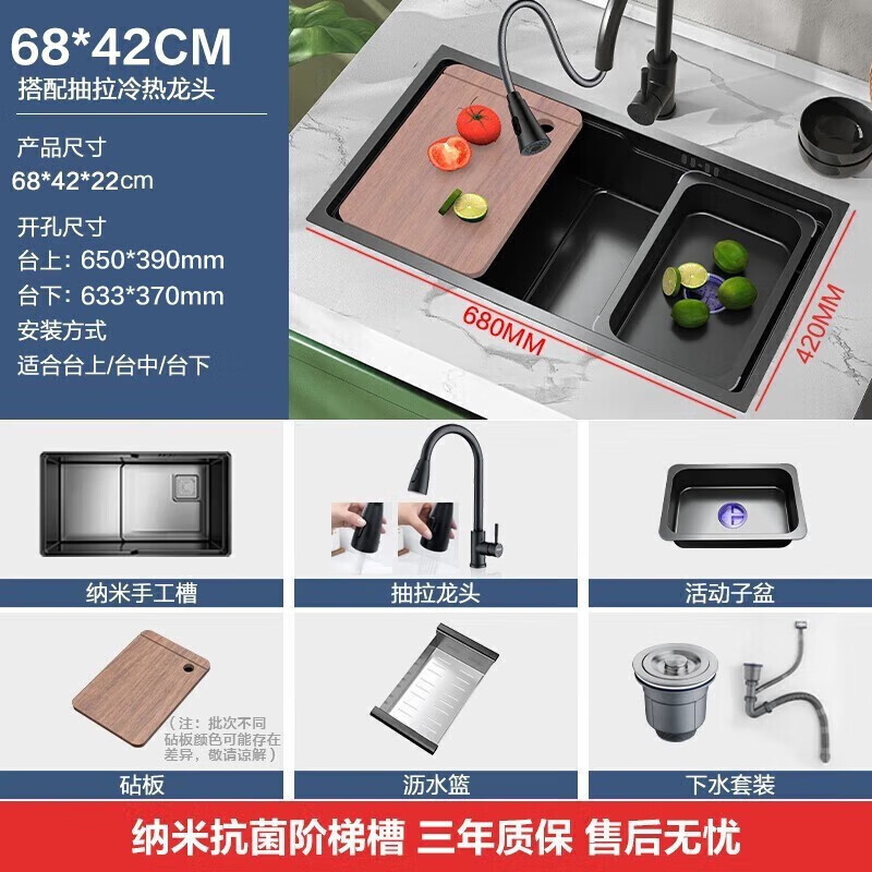 四季沐歌M-B1016(68)-Y黑金刚手工纳米单槽配置参数: