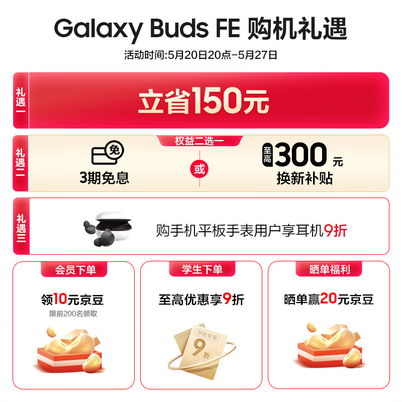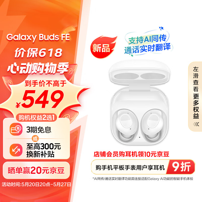 三星Galaxy Buds FE 真无线蓝牙耳机智能降噪运动耳机/AKG调校/出众音质/持久续航/舒适佩戴 雪境白价格:549.00元!