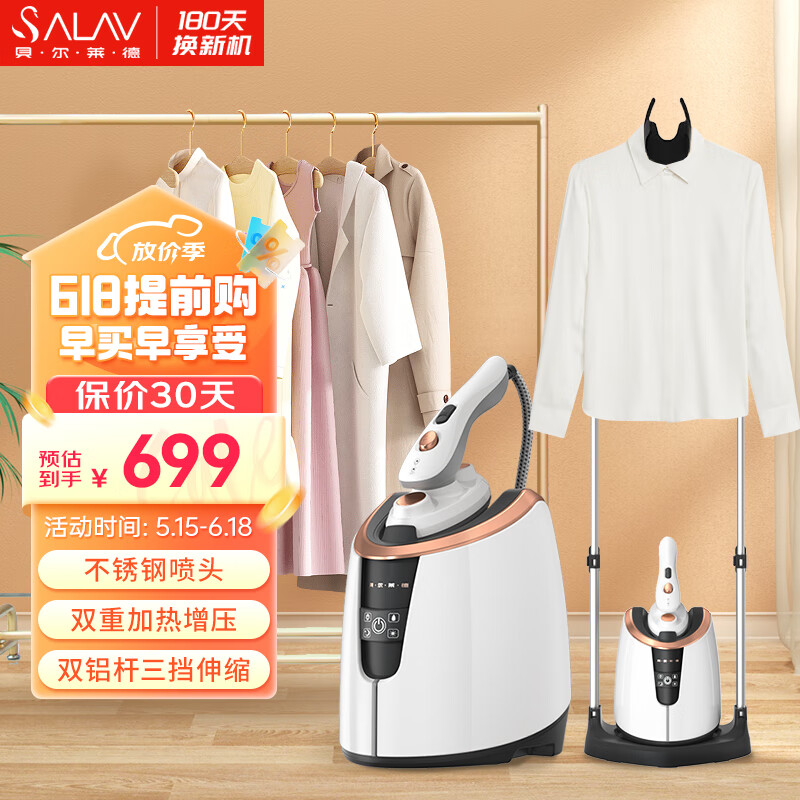 贝尔莱德(SALAV)挂烫机家商两用双铝杆手持熨烫机大功率蒸汽电熨斗挂烫机服装店ST220(白色)价格:776.00元!