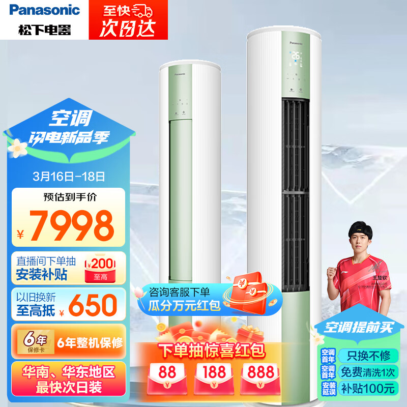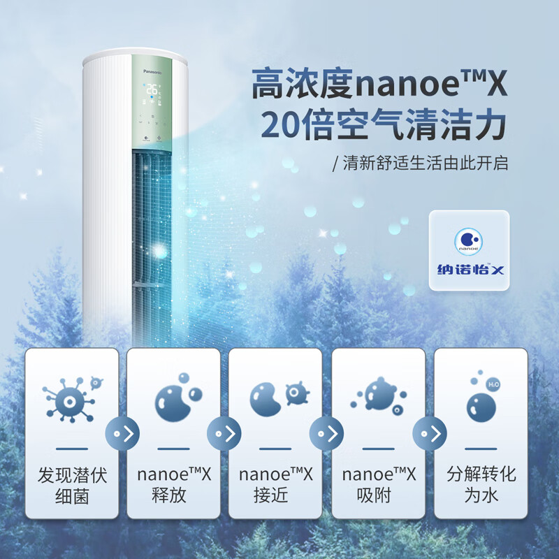 松下(Panasonic)空调 净悦星3匹新三级能效 圆柱立式柜机客厅空调变频 纳诺怡除菌 WiFi 以旧换新 云杉绿ZY72F330G价格:7998.00元!