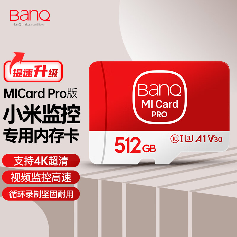 banq 512GB TF(MicroSD)存储卡 A1 U3 V30 4K 小米监控摄像头专用卡&行车记录仪内存卡 高速耐用Pro升级版价格:299.90元!