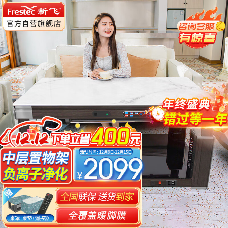 1、新飞1.38米电暖桌电烤火炉茶几带升降正品语音控制取暖器家用电热桌子变频多功能节能取暖餐桌烤火桌XF-C1,我买的第二款烤火桌了,性价比挺高的,总体来说挺好的,