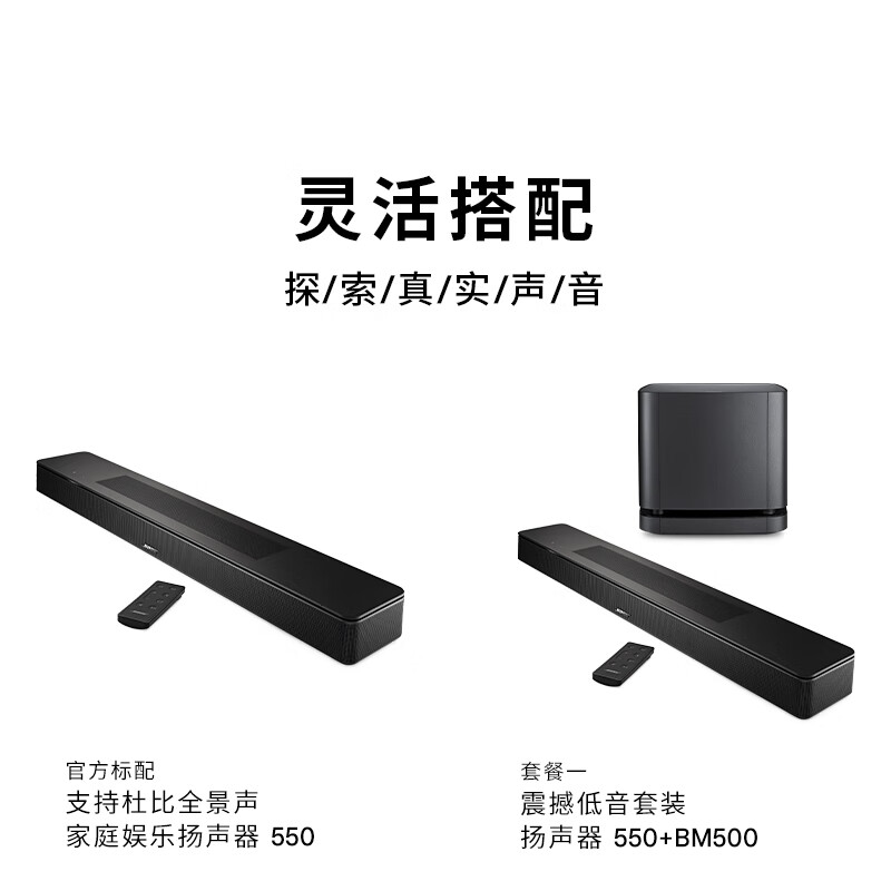 Bose家庭娱乐扬声器550组合黑色 蓝牙无线家庭影院/电视客厅音响 550回音壁+BM500无线低音箱420128RM价格:8998.00元!