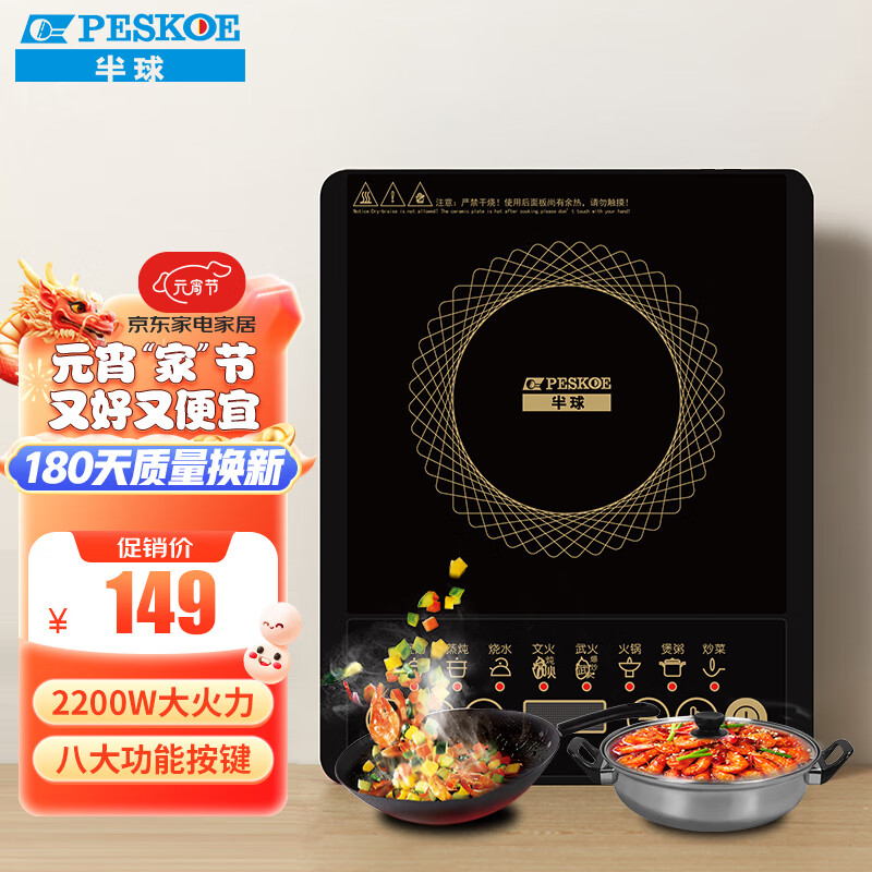 半球 电磁炉家用电磁灶火锅炉电池炉电炉灶套装 触摸按键多功能预约定时 2200W功率 汤炒套装价格:159.00元!