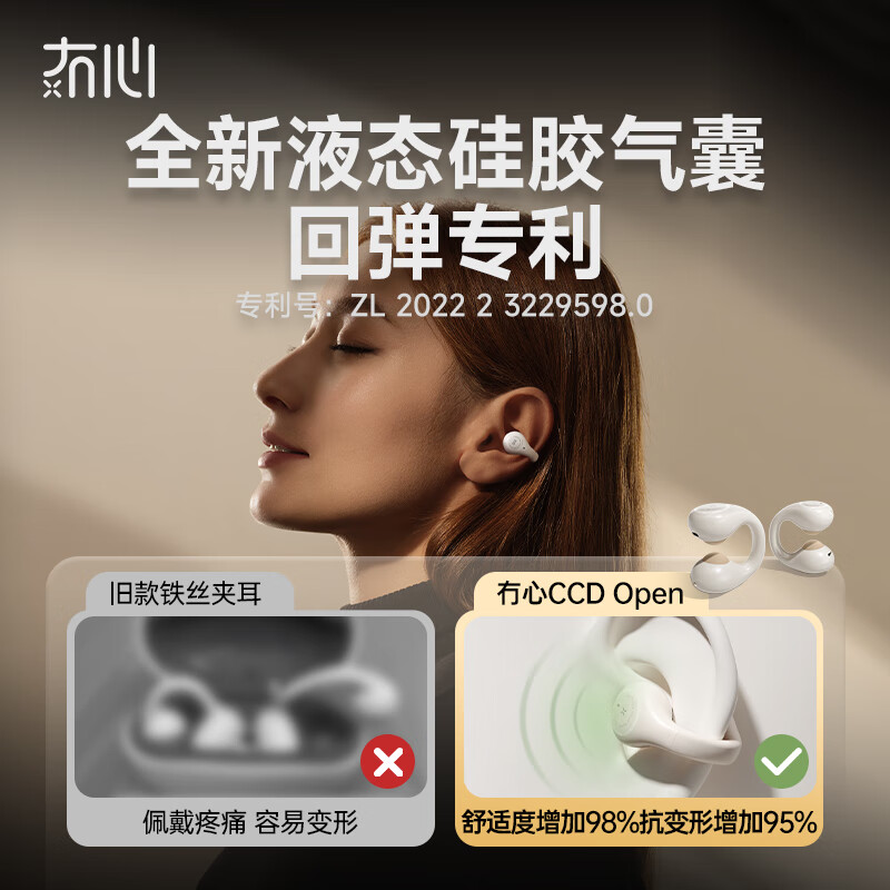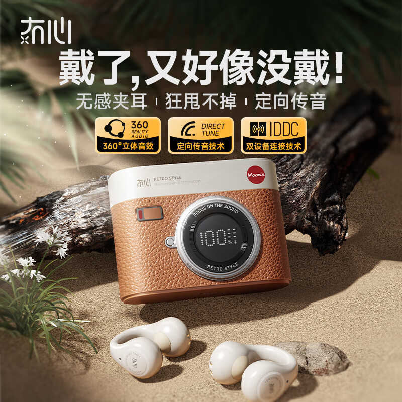 冇心CCD open【2024新品|首创5.4蓝牙】耳夹式蓝牙耳机开放式骨传导概念音乐运动跑步耳机 复古棕价格:198.00元!