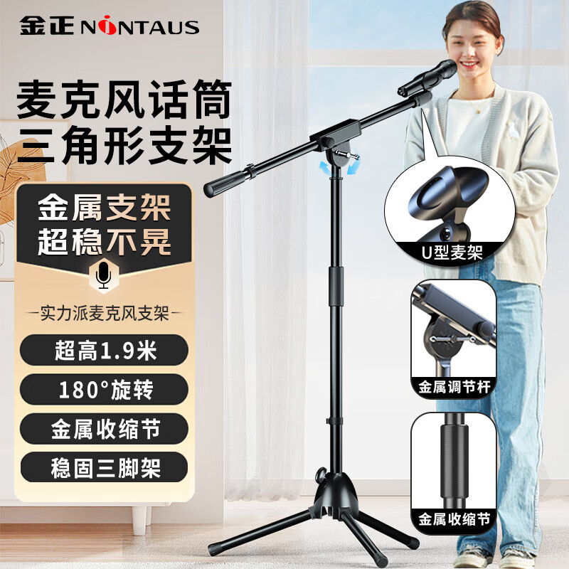 金正(NINTAUS)HY-102J麦克风话筒支架麦架落地直播钢管管体伸缩三脚架录音舞台支架设备配咪夹金属款(单杆)价格:219.00元!