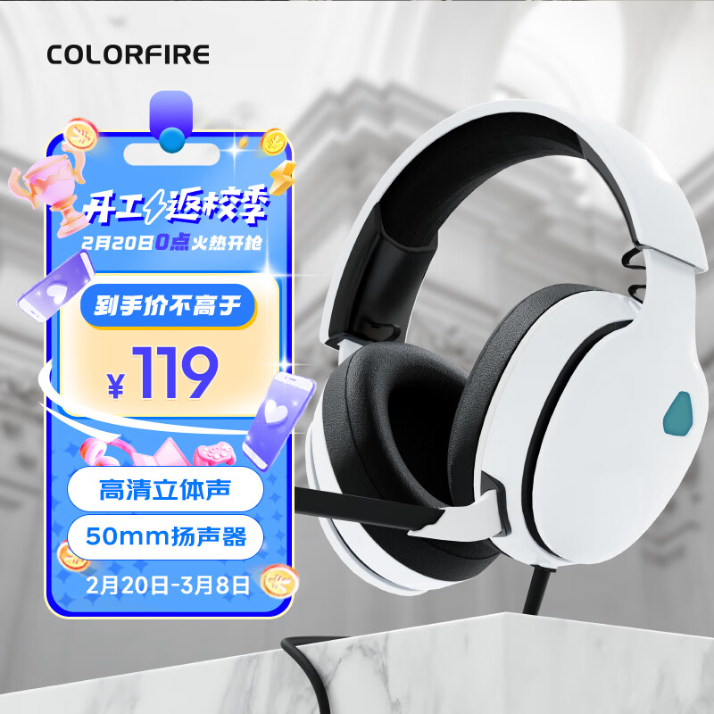 Colorfire头戴式耳机 3.5mm有线手机耳麦带麦克风网课耳机办公游戏 索拉里斯 FE-H01-112 白色价格:129.00元!