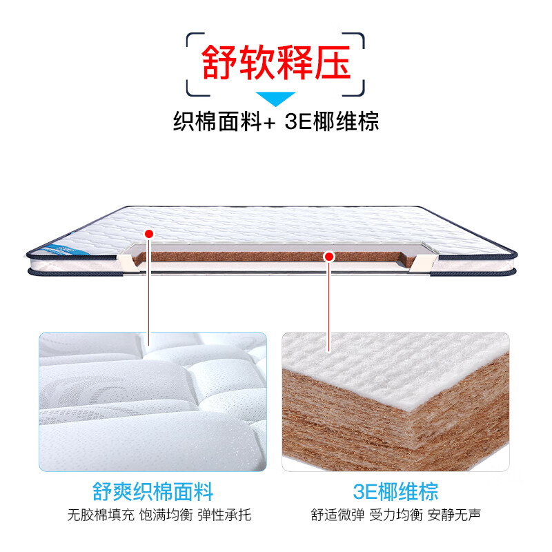宜眠坊京东居家优选3E椰棕床垫 青少年偏硬棕垫A301-06舒适版 1.8*2米价格:399.00元!