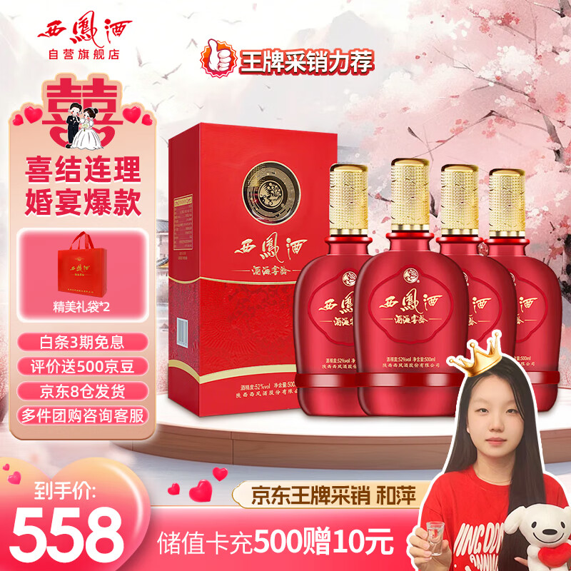 西凤酒 龙凤呈祥52度陕西纯粮凤香型白酒海窖龄婚宴请送礼盒装500mL*4价格:558.00元!