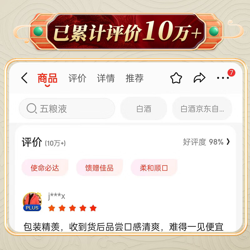 这款五粮液白酒外观我比较的喜欢,质量特别的好,包装很严实,没有破损,每个细节都看得出用心和品质。