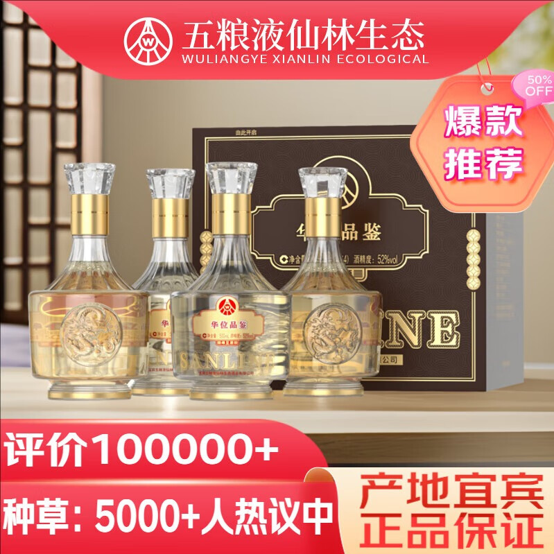 五粮液仙林生态 龙腾四海 口粮酒产地宜宾52度500ml*4瓶 白酒礼盒送礼价格:273.00元!
