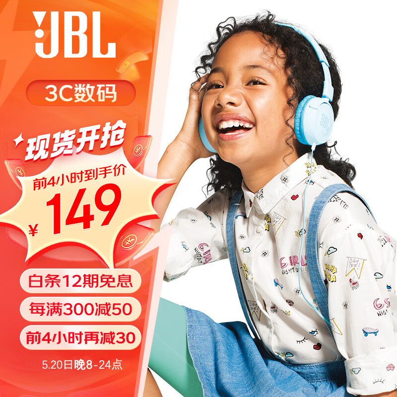 JBL JR300 儿童耳机头戴式 低分贝益智耳机沉浸式培养学生专注力英语学习网课听音乐耳机 浅蓝色价格:149.00元!