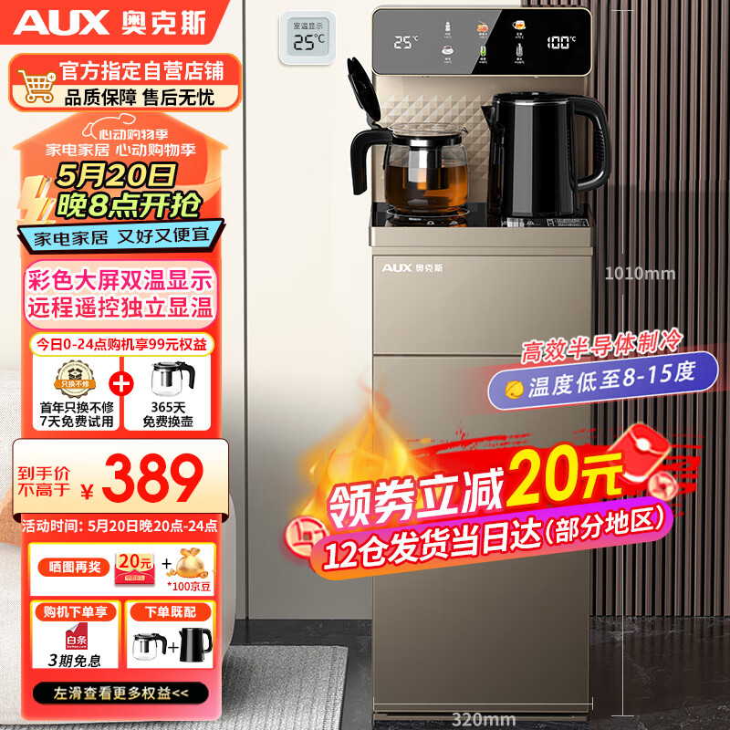 奥克斯(AUX)家用立式下置桶饮水机 家用高端客厅多功能智能遥控大屏双显茶吧机 一键专温定制YCB-0.75-40冷热价格:409.00元!