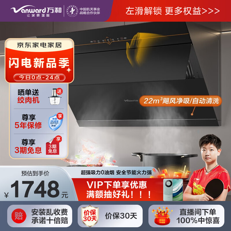 万和(Vanward)侧吸式家用抽油烟机 燃气灶具烟灶套装 23风量挥手智控 自动清洗 烟灶套餐DJ738+G6L50(天然气)价格:1748.00元!