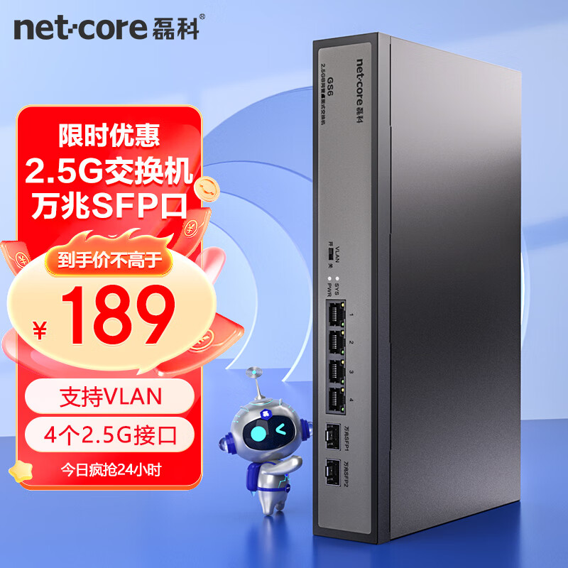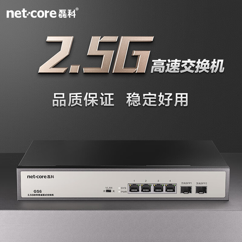 磊科(netcore)GS6 6口企业级交换机4个2.5G电口+2个万兆SFP光口 支持向下兼容1G光电模块 千兆网络分线器价格:199.00元!