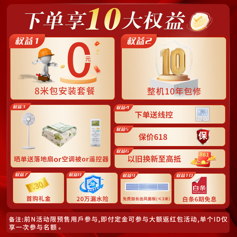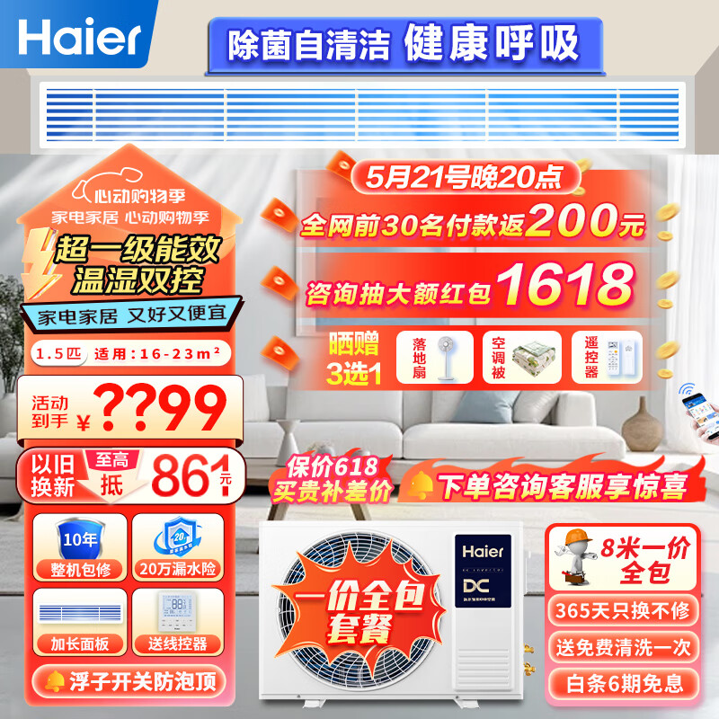 海尔(Haier)中央空调风管机一拖一 1.5匹新一级能效 卧室嵌入式空调 云舒 一价全包 KFRd-35NW/70EAD81价格:4999.00元!