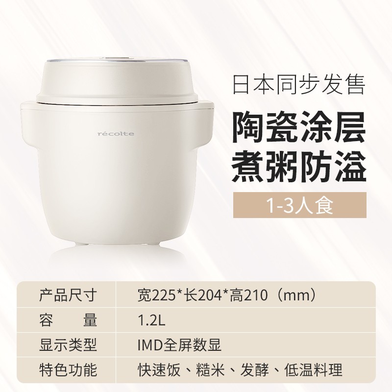 丽克特(recolte) 迷你电饭煲不粘锅煮饭1.2L 智能小型1-2人家用可预约小家电婴儿煮粥煲汤锅多功能煮饭电饭锅 1-2人电饭煲-日本品牌-香草白-RCR-1(W)价格:519.00元!