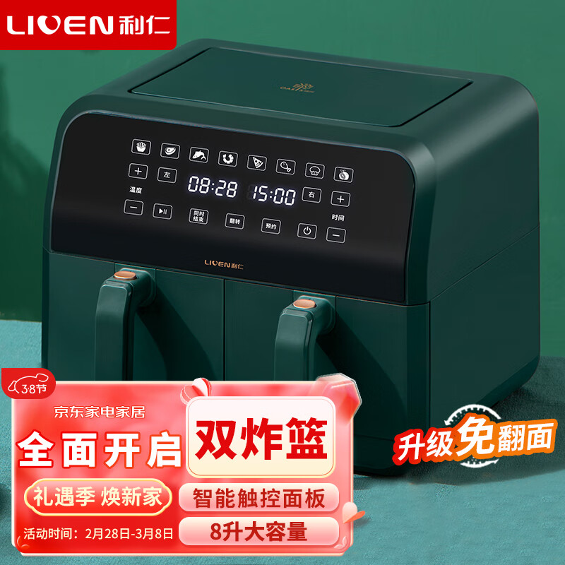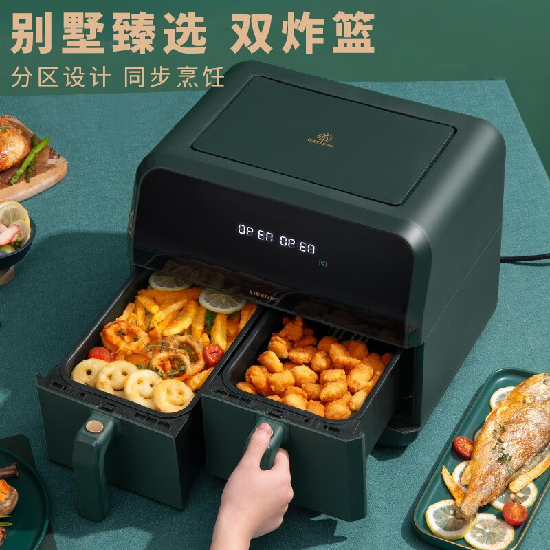 利仁(Liven)空气炸锅家用8升大容量无油电炸锅智能双炸篮 多功能空气炸烤箱蒸汽嫩炸薯条机G-68价格:539.00元!