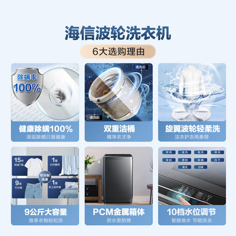 海信(Hisense)波轮洗衣机全自动 9公斤家用租房 脱水机 桶自洁 除螨洗HB90DA35以旧换新价格:719.00元!