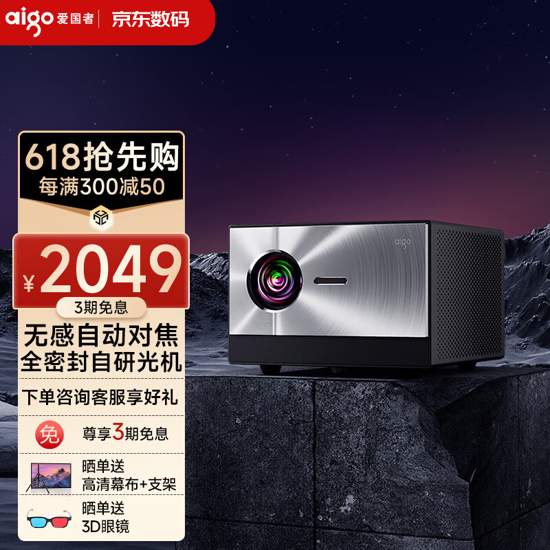 爱国者(aigo) H59 投影仪家用 投影机办公1080P家庭影院(3400流明 1080P超清画质 AI智能语音 5G双频WIFI6)价格:2599.00元!