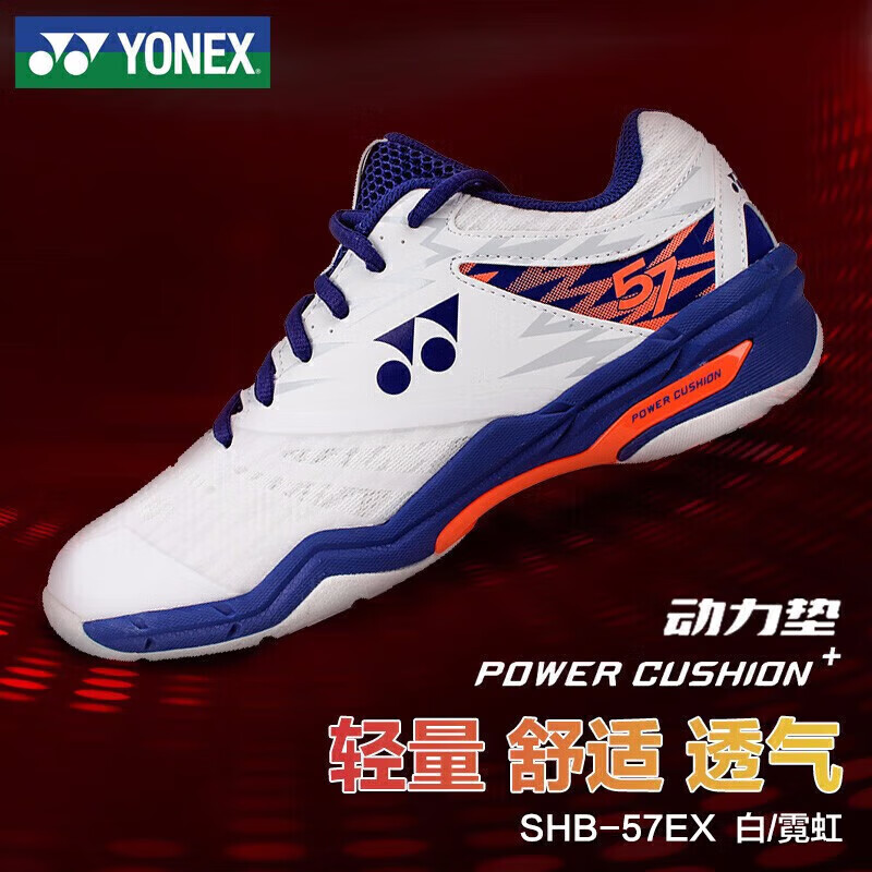 YONEX尤尼克斯羽毛球鞋yy包裹舒适透气比赛训练男女SHB57EX白/霓虹41码价格:499.00元!
