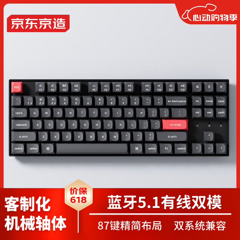 京东京造 K8蓝牙双模机械键盘 87键背光茶轴无线键盘 Mac/iPad键盘 键盘机械 蓝牙键盘 键盘无线价格:289.00元!