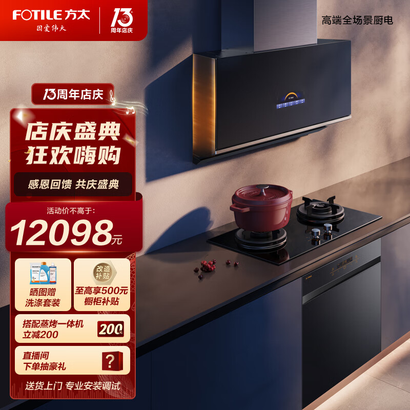 方太(FOTILE)烟灶洗三件套 26大风量超薄近吸烟机 5.0kW烟灶联动燃气灶 15套嵌入式洗碗机 P10.i+THF1A+VJ06价格:12098.00元!