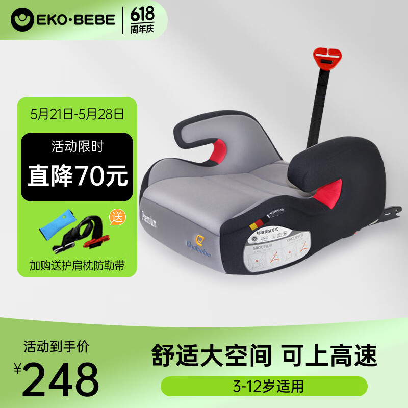 怡戈(Ekobebe)儿童座椅3-12岁汽车用增高垫大童车载便携简易坐垫008城堡灰价格:288.00元!