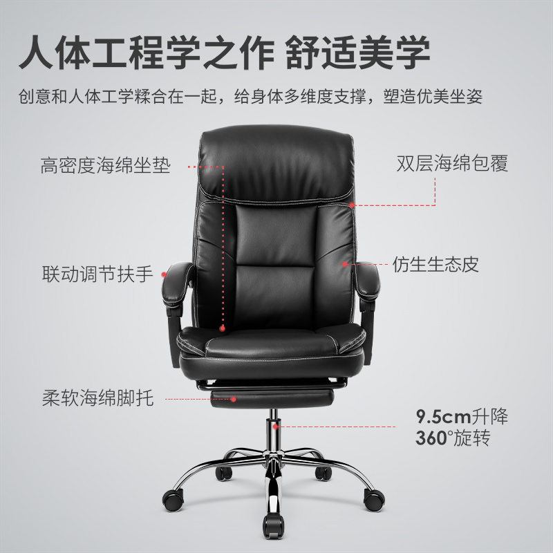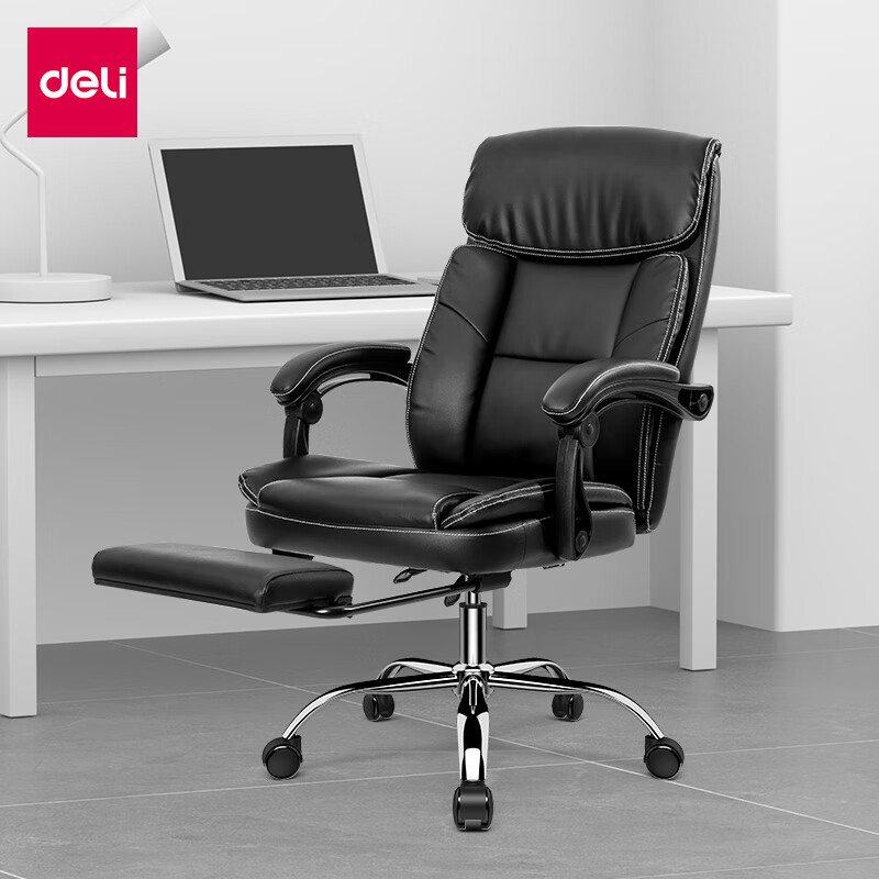得力(deli) 带伸缩脚托老板椅 人体工学电脑椅 可躺皮椅子 87082 黑色价格:669.00元!