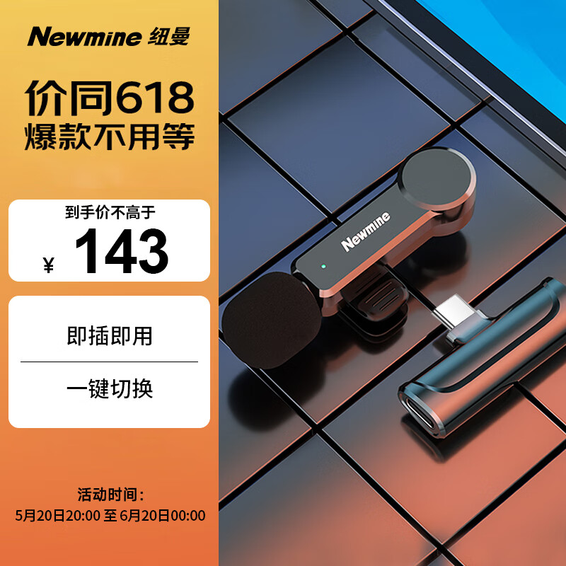 纽曼MC83无线领夹麦克风主播直播录音设备户外短视频抖音vlog收音麦手机专用降噪随身无线话筒type-c版价格:149.00元!