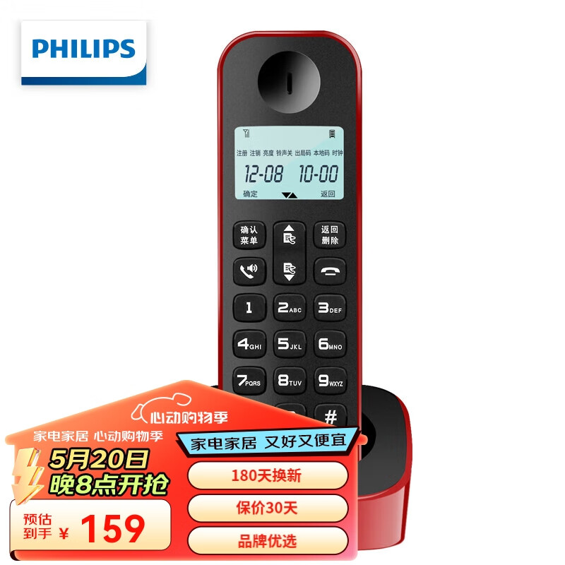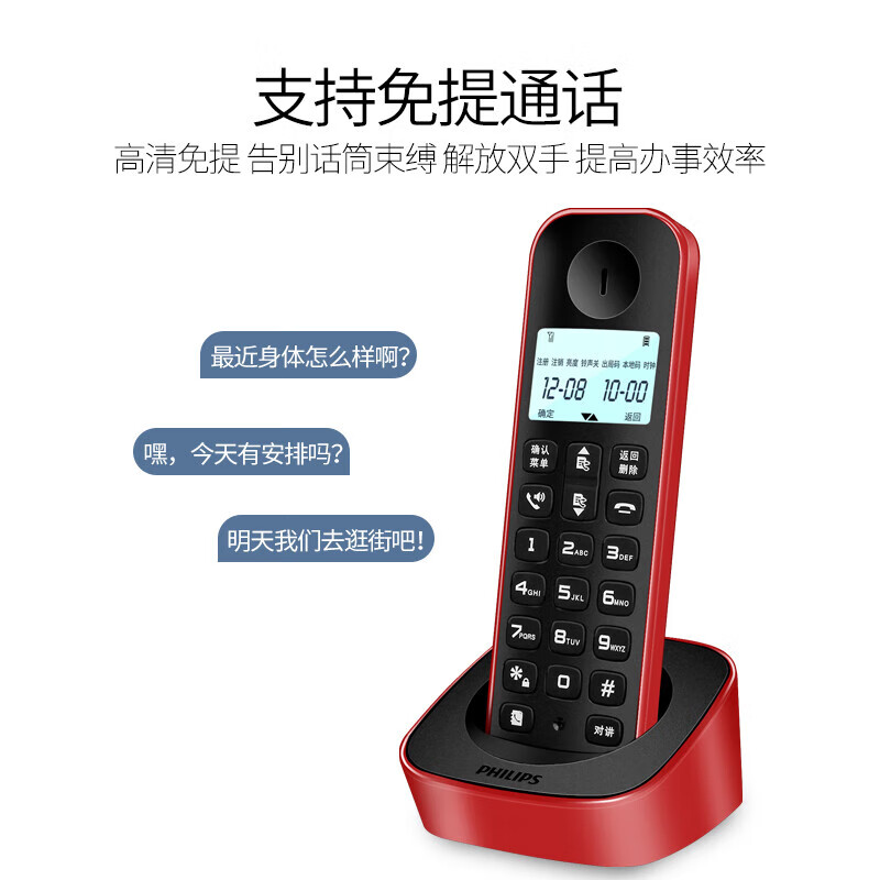 飞利浦(PHILIPS)无绳电话机 家用办公中文大音量无线座机子母机信号范围广 DCTG160单机 红色价格:159.00元!