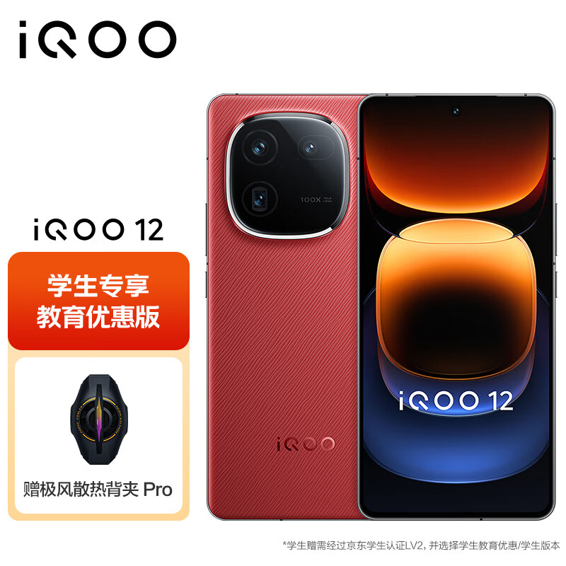 vivo【教育优惠-学生专享价】iQOO 12 12GB+256GB燃途版 第三代骁龙 8 自研电竞芯片Q1 5G手机价格:3489.00元!