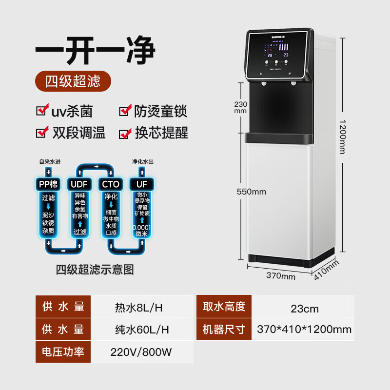 三鼎 饮水机商用净水机一体公司直饮机商用开水器RO反渗透过滤立式净饮机SDUFG-166价格:1599.00元!