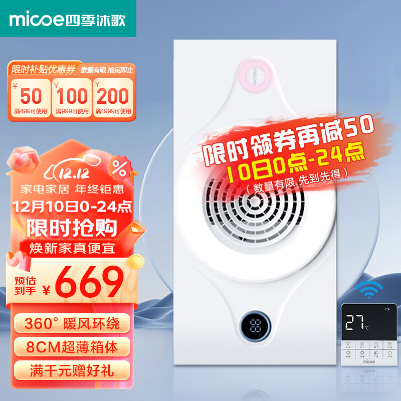 四季沐歌(MICOE)浴霸风暖 浴室暖风机大功率速热 智能氛围灯双电机360°暖风环绕价格:769.00元!
