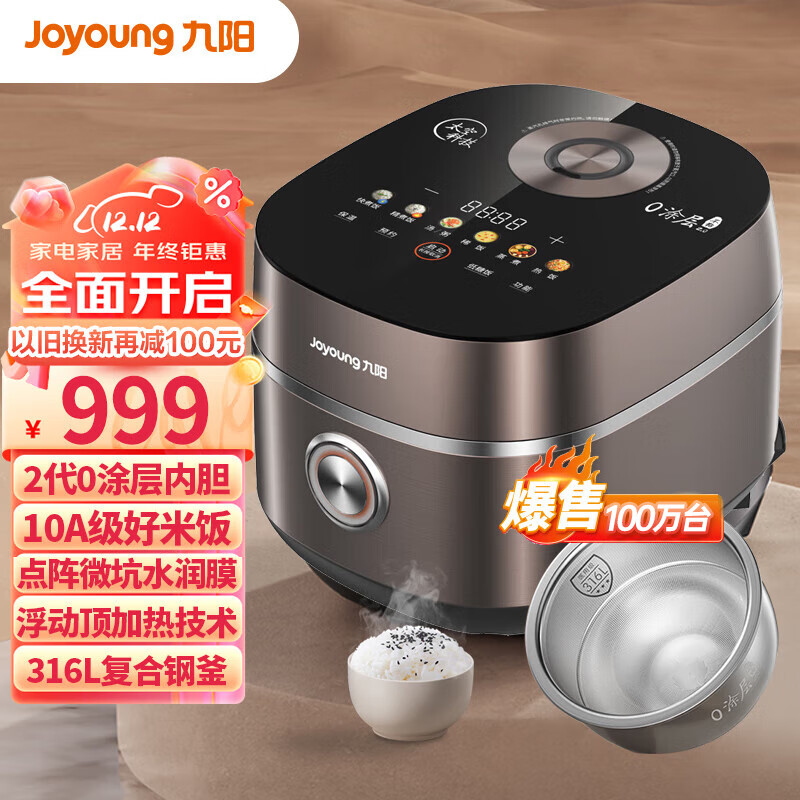 九阳(Joyoung)【2代0涂层】2L小型不粘电饭煲电饭锅点阵微坑水润膜IH电磁上下加热316L钢釜10A认证无涂层2升20N7价格:1149.00元!